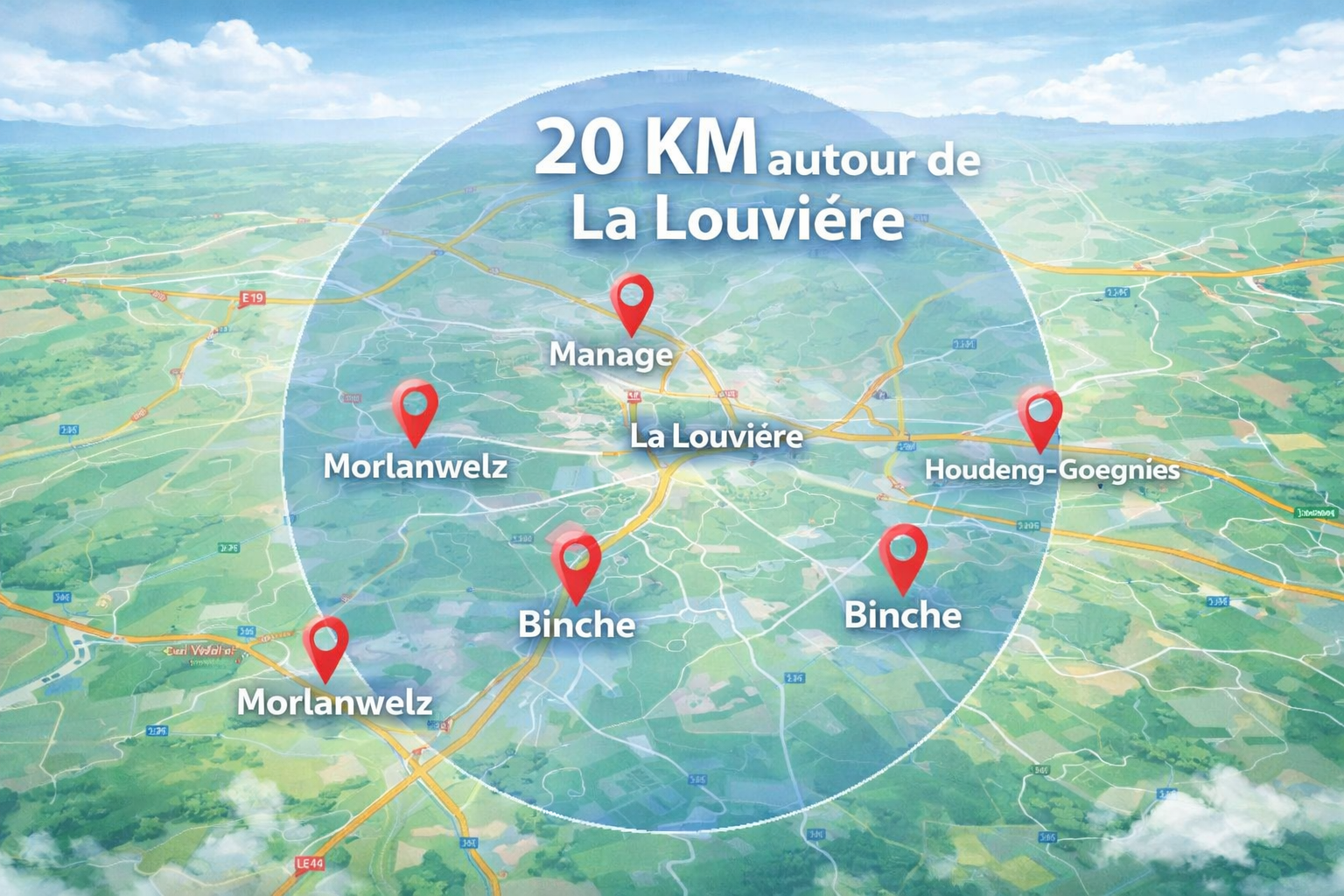 Intervention possible dans un rayon de 20 km autour de La Louvière.